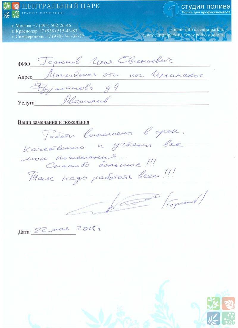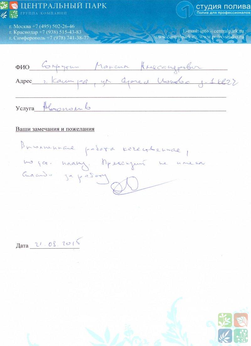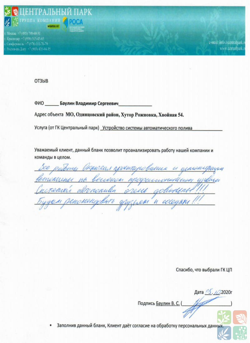 Также бесплатно мы рады будем предоставить Вам коммерческие предложения и проекты систем автоматического полива. Мы надеемся на сотрудничество с Вами.