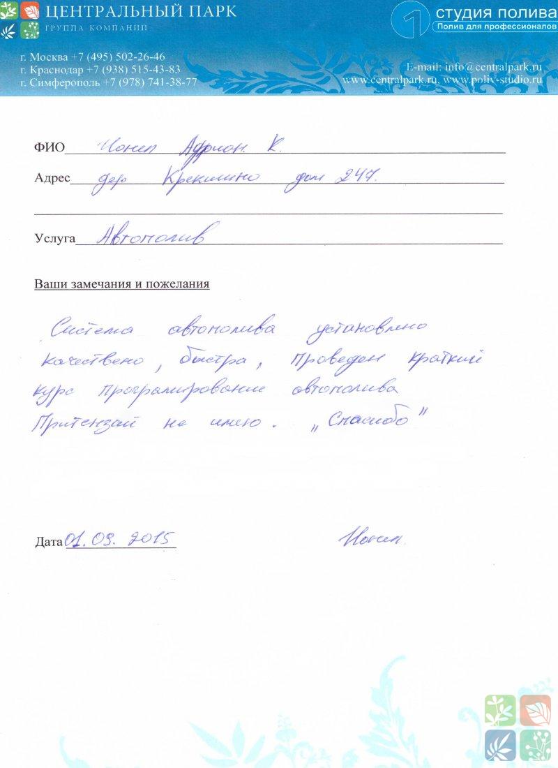 Также бесплатно мы рады будем предоставить Вам коммерческие предложения и проекты систем автоматического полива. Мы надеемся на сотрудничество с Вами.